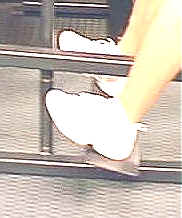 This exercise is used for primarily for skating skills that utilize foot/ankle flexion such as gliding, stopping, control skating etc. The muscles on the front of the leg provide stability during execution. On tight turn skills, this muscle is the primary mover on the punch in. Extend and flex as shown. Hold at top of position for 1 second. This exercise can be perform standing as in (3) but more sport specific when knees flexed. |