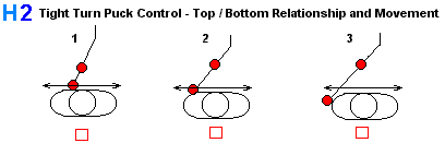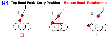Diagram H2 - Tight turn puck control. The following diagrams represent top hand position prior to executing a tight turn. When executing a tight turn (forehand side) from which hand position do you initiate your tight turn from the most often. Remember, this is to the forehand side only.